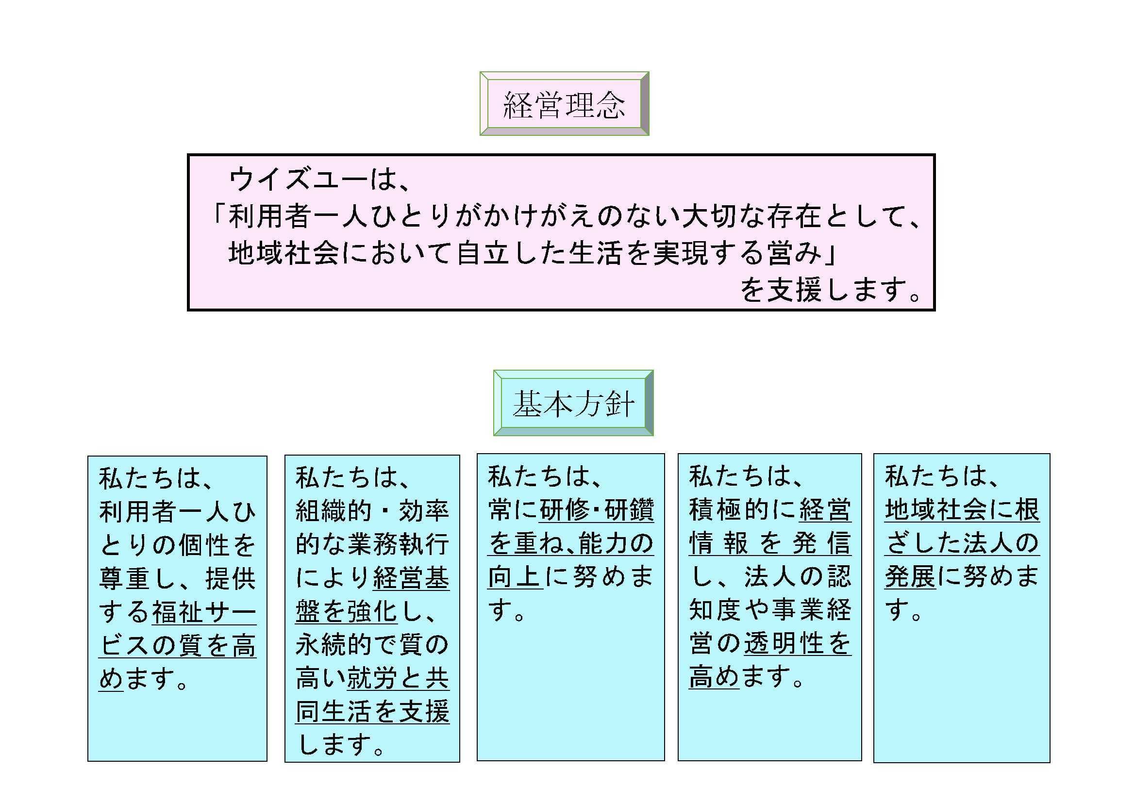 | 理 念 | 『地球上の誰一人取り残さない』 | 『利用者一人ひとりがかけがえのない大切な存在として、地域社会において自立した生活を実現する営みを支援する』 |